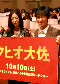 いま日本で最も熱い視線を浴びている俳優のひとり、堺雅人主演最新作『クヒオ大佐』の試写会が10月4日(日)に行われ、堺さんと共演の松雪泰子が舞台挨拶に登壇しファンを喜ばせた。